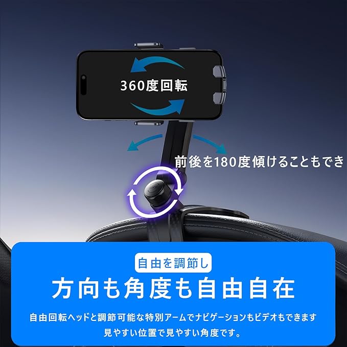 ?ANKDELL クリップ式 車載 スマホ ホルダー 【令和7年NEWモデル】 車 スマホスタンド 360度回転 適切な角度に調整 安定性拔群 取り付け簡単 転落防止 防振 互換性が高い カー用品 4〜7.2インチ全機種対応 日本語説明書付き(ブラック) a