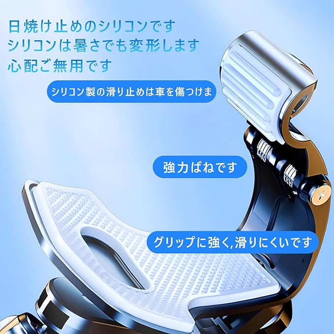 【業界最強安定感】車載スマホホルダーの耐久性に優れたスプリングクリップ装着設計により、どこにでもしっかりと取り付けられます。スプリン