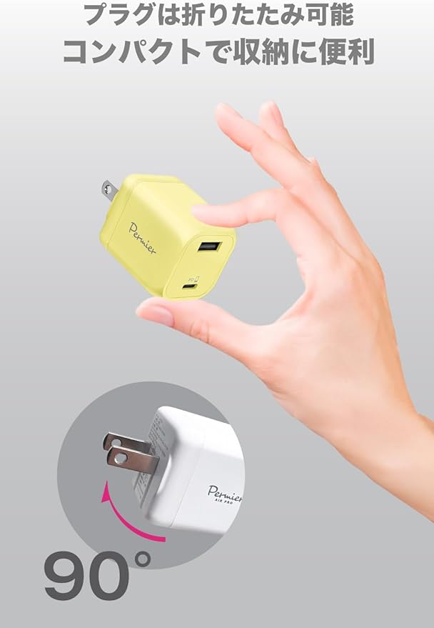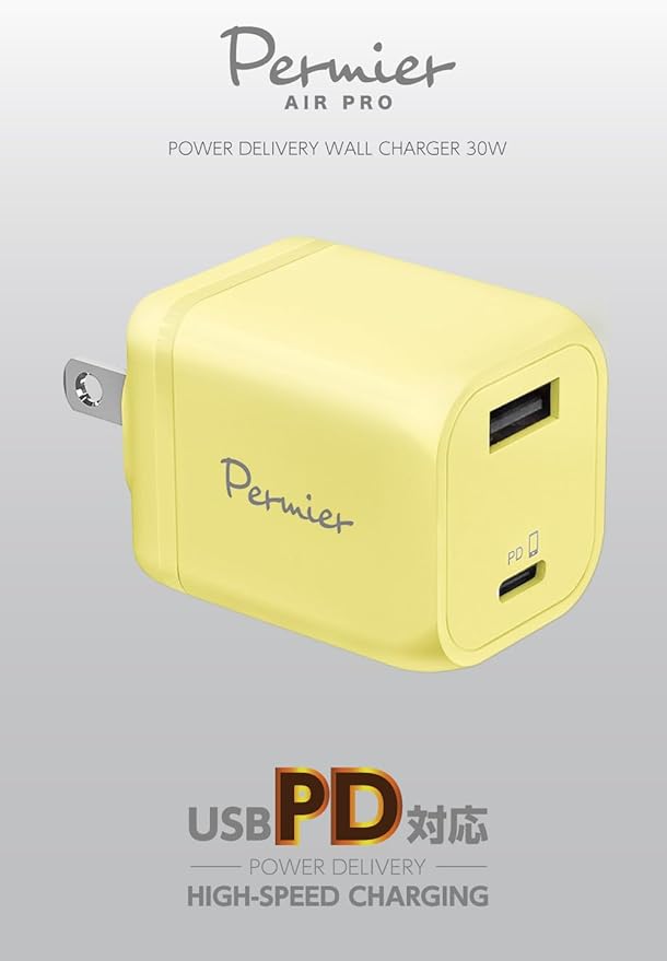 多摩電子工業 PD30W対応 AC充電器 USB×2ポート(USB-C、USB-A)Permier PR-AP153UC次世代素材GaN採用 急速充電対応 ACアダプター 新型GaN 窒化ガリウム採用 PSE技術基準適合 折りたたみ式プラグ iPhone14/ 15 / 15 plus/15pro/15 Pro max/Android/MacBook (レモンイエロー) a