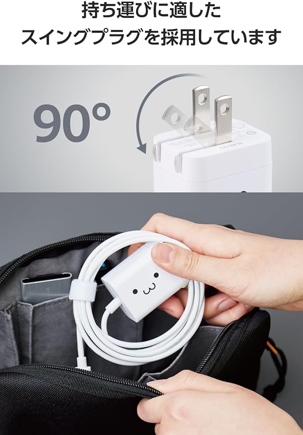 エレコム 充電器 Type-C USB-C 20W USB PD対応 ケーブル一体型 1.5m PSE認証品 GaN採用 折りたたみ式プラグ しろちゃん 【 iPhone16 15 等対応】 EC-AC6920WF a
