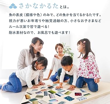 【お子様の知育にも!】視覚と触覚を刺激する知育玩具として遊んだり、魚の漢字や雑学も楽しめるカードゲームです。 小さなお子さまから視力が悪いお年寄りの方まで皆で楽しめます。