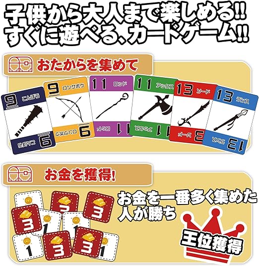 相手が持つカードを読み、多くの武器を獲得した者が勝利する「心理力」「推察力」が鍵を握るボード・カードゲーム!