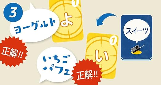 ワードゲームの新定番! 「文字」と「お題」に合う言葉を早く言った人がカードを貰えます。 ルール簡単。小さなお子様からシニアまで。2人から大人数まで楽しく遊べます。 お題を読み上げる人が居れば視覚に障害をお持ちの方でも遊べます。