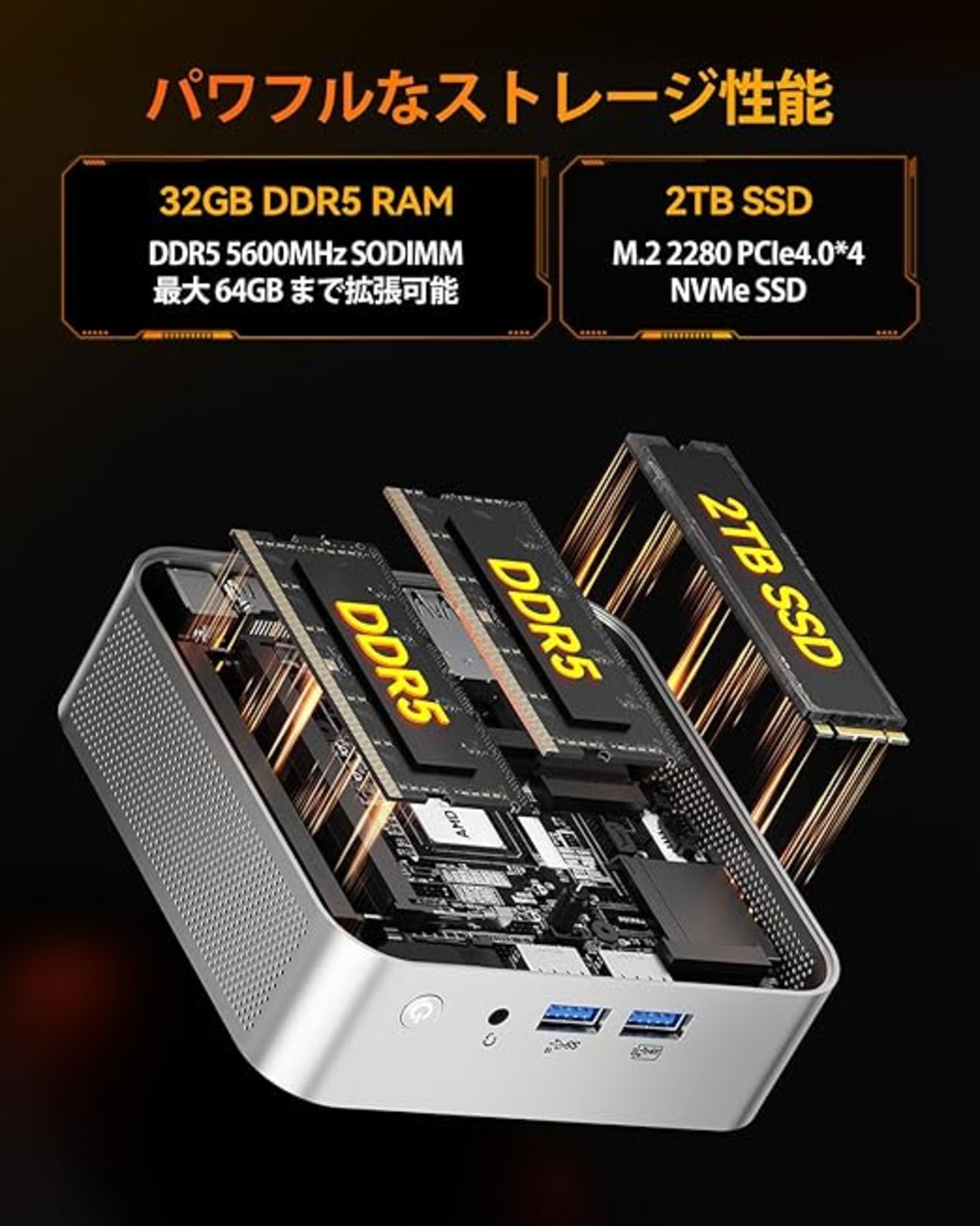 【コンパクト、究極のパワー 】GEEKOM A8 ミニPC、AMD Ryzen 9 8945HS 32GB DDR5 5600MT/s 12TB SSD AMD Radeon 780M 全金属ハウジング 高耐久 超長寿命|高効率冷却 低騒音|SDカードスロット設計|8K対応&4画面同時出力|Windows 11 Pro 正規版|WiFi 6E・Bluetooth 5.2・2.5G LAN a