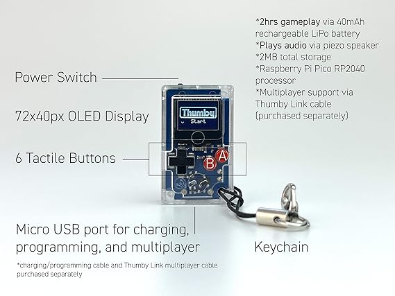 TinyCircuits Thumby (クリア) 小さなゲーム機 プレイ可能なプログラム可能なキーチェーン: 電子ミニチュア STEM学習ツール a