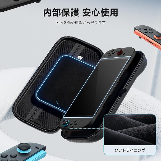 Switch 2 収納ケース キャリングケース 収納バッグ ナイロン素材 ソフトライニング 防塵 耐衝撃 大容量 10枚ゲームカードスロット 外出/旅行用 小物収納 持ち運び便利 周辺アクセサリー整理 Switch2に対応 a