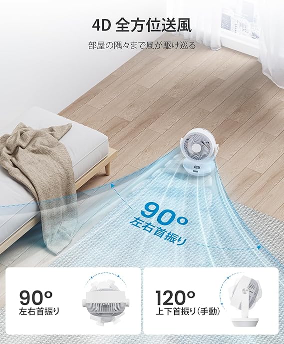 【お好みの風量調節可能・賢いAIモード】サーキュレーターが4段階の