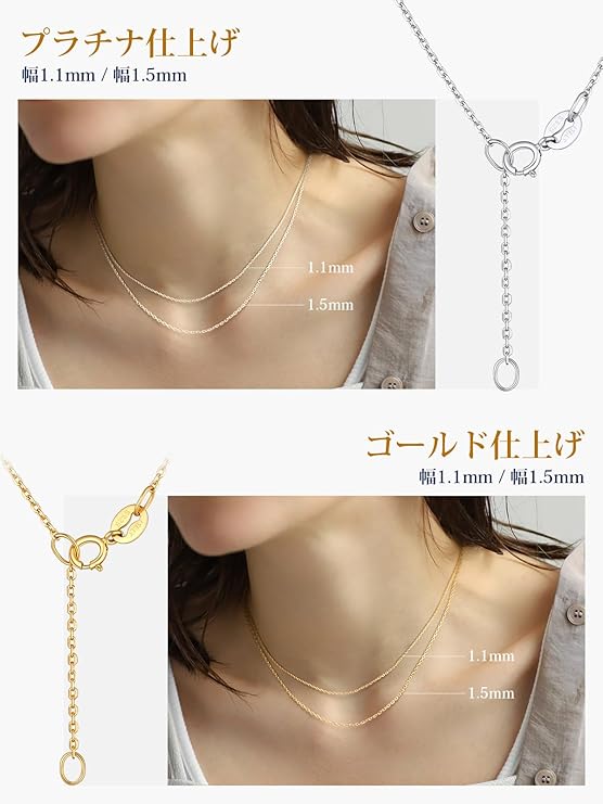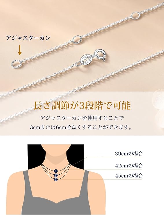 [Suplight] ネックレス レディース チェーンのみ シルバー925 つけっぱなし あずきチェーン 金属アレルギー対応 細め a