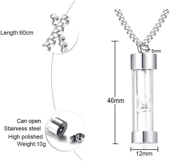 [Rockyu] ネックレス メンズ レディース ゴールドブラック ピンクゴールド シルバー チタン製 ガラス瓶 メモリアルネックレス ペンダント 遺骨収集 手元供養ネックレス チェーン付く 髪 ピル 薬を納め 大容量 記念ジュエリー a