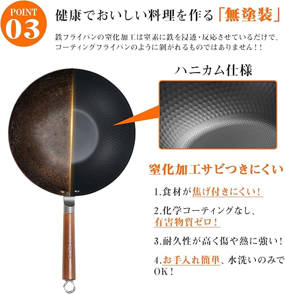 WANGYUANJI フライパン 32cm 鉄中華鍋 深型 炒め鍋 軽い鍋 ih ガス対応 蓋付き 錆びにくい 北京鍋 蓋付き 中華料理店 レストラン 家庭用 a