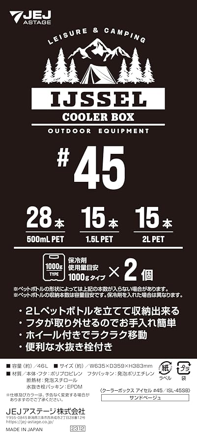 JEJアステージ アウトドアシーンに映える クーラーボックス アイセル サンドベージュ 46L 日本製[幅63.5×奥行35.9×高さ38.3cm]フタが外せてお手入れ簡単 軽量 ランチボックス 部活 アウトドア お出かけ レジャー スポーツ 水抜栓 キャスター付 a