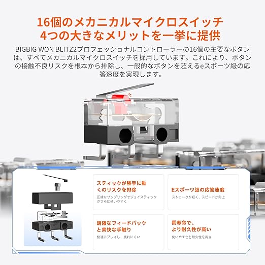 BLITZ2 TMR コントローラー 無線/有線接続 TMR ホールジョイスティック 2000Hzポーリングレート 16個のメカニカルスイッチボタン 0.0005秒超低遅延 360°シリコングリップ 1000mAh大容量バッテリー アプリ対応 FPSプロゲーマー向け a