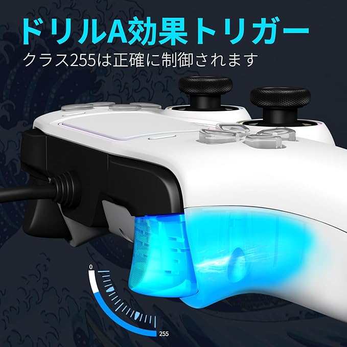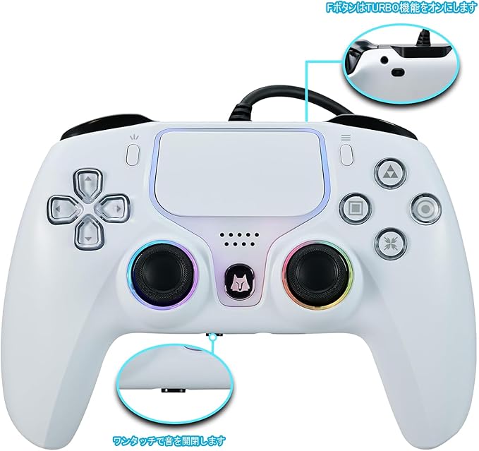 NBCP PS5 コントローラー【PS5 Pro/Slim/New PS5 対応/PS4】有線ゲームパッド|遅延なし|DualSense互換|TURBO機能|PC/Steam対応|ジャイロセンサー・デュアル振動・高耐久ボタン・ヘッドホンジャック搭載(ホワイト) a