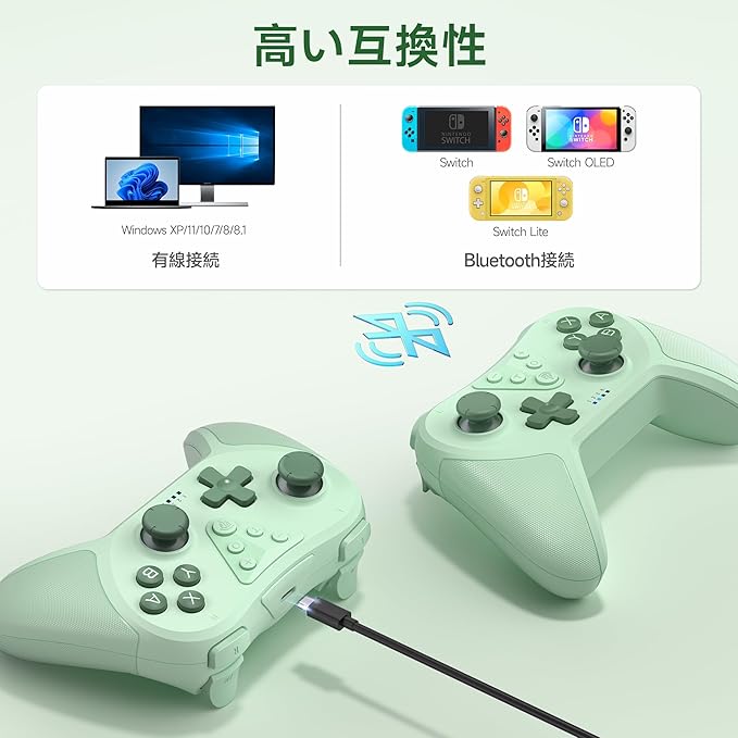 【Bluetooth接続&有線接続】 T37 Switch コントローラーには 2 つの接続モードがあります。 Bluetoothを使用しSwitch/Switch Lite/Switch OLEDに接続でき、Window XP/11/10/8.1/8/7へは有線接続して使用することができ、コントローラーを複数のデバイスで使用することが出来ます。コントローラーは一度ホストに接続するとその機種を記憶し使用することができます。ホストが電源オンの状態であれば、軽くタッチするだけで再接続できます。【注意