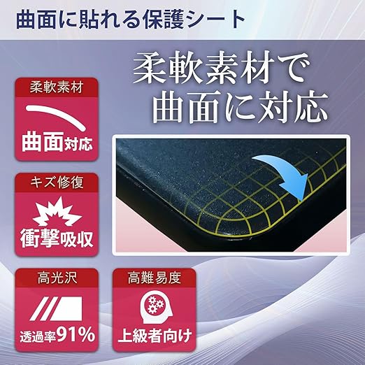 【曲面対応】優れた柔軟性でデバイスの曲面にも貼り付けることが可能です。