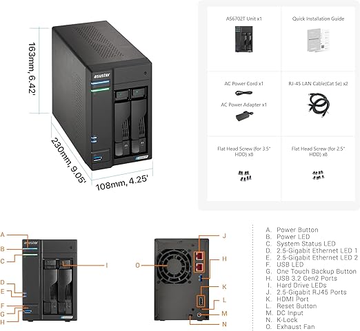 ASUSTOR ASUS子会社 NAS キット 2ベイ AS6702T Lockerstor 2 Gen 2 4xM.2 NvMe SSDスロット Intel Celeron N5105 クアッドコア 2x2.5GbE高速ポート DDR4 4GBメモリ HDMI 2.0b 搭載 メーカー3年保証 国内正規代理店品 a