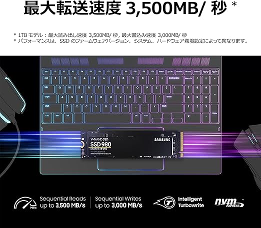 Samsung 980 1TB PCIe Gen 3.0 ×4 NVMe M.2 最大 3,500MB/秒 内蔵 SSD MZ-V8V1T0B/EC 国内正規保証品 a