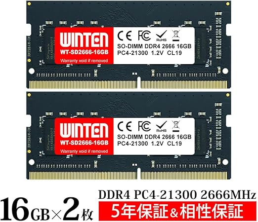 WINTEN ノートPC用メモリ DDR4-2666 32GB(16GB×2枚) 260Pin CL19 1.2V SODIMM SDRAM 内蔵メモリー 増設メモリー【5年保証・相性保証】WT-SD2666-D32GB a