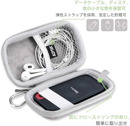 AGPTEK HHD SSD ケース 保護ケース 保管バッグ 外付けハードディスク収納ケース 防塵 撥水 外付SSD HHD 1TB 2TB 500GB 250GB エクストリーム ポータブル対応 専用保護用キャリングケース 旅行収納 音楽プレイヤー/USBメモリー/ケーブル/イヤホン収納 (16.4 x 14.8 x 2.2 cm) グレー a