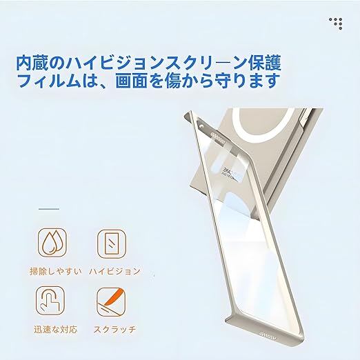「MagSafe対応&ワイヤレス充電」スマホケースに磁石を埋め込み、MagSafe充電器や車載ホルダーに「パチン」と確実に吸着。特別な放熱設計で、充電中のスマホの熱を分散。ゲームや動画を見ながらでも安心して充電できます。純正のMag