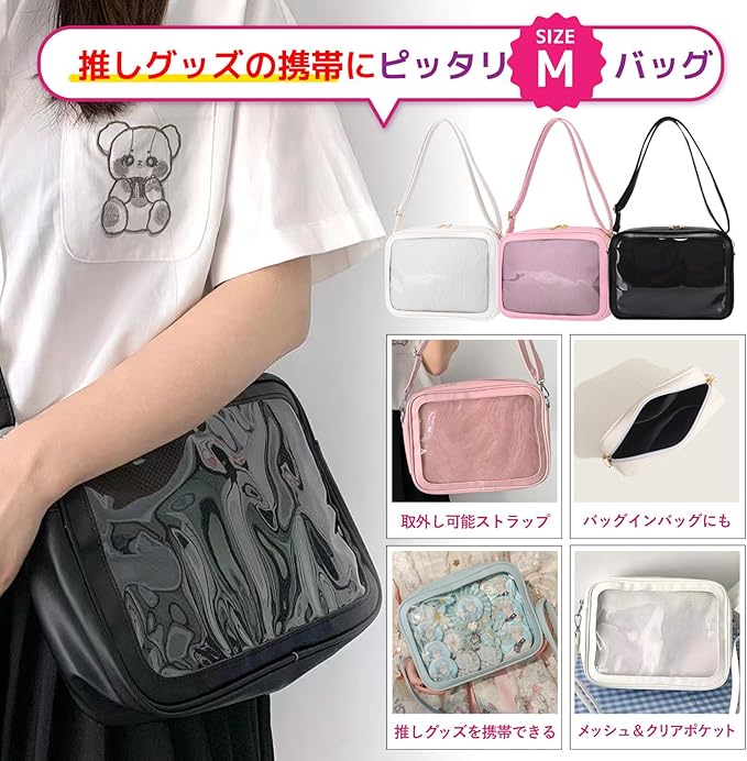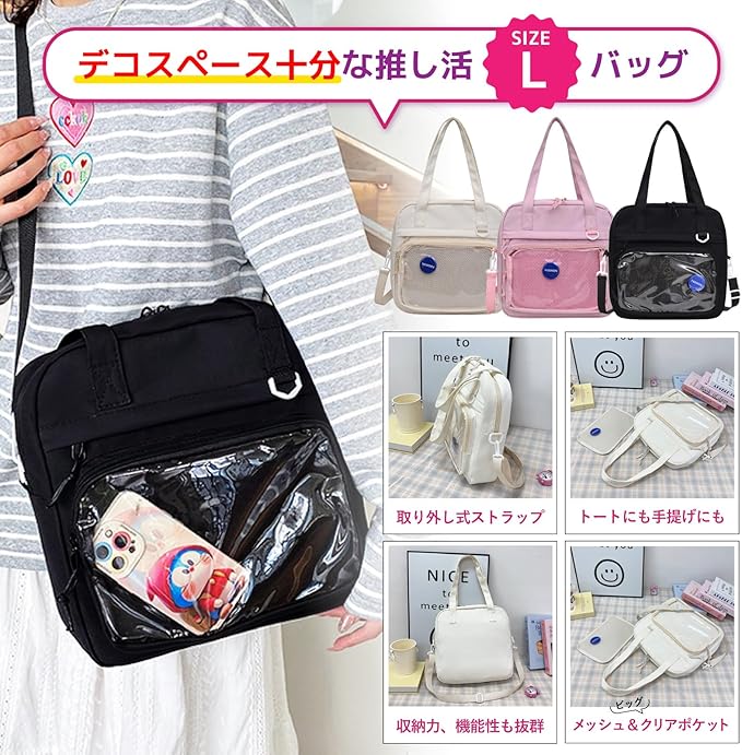 [PIENSE] 痛バッグ 痛バ 推し活 ショルダーバッグ クリアポケット トートバック 缶バッチ ぬいぐるみ オタ活 斜め掛け a