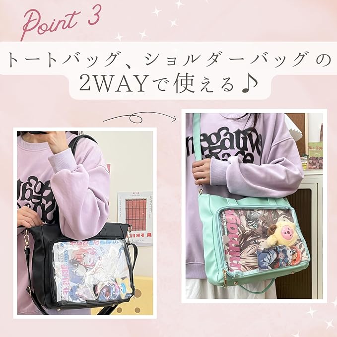 [ハルジオ] 痛バッグ ショルダー 痛バ トート 推し活バッグ ショルダーバッグ トートバッグ ハンドバッグ 2WAY 痛バック 可愛い いたばっく いたば 推し活 バッグ グッズ ぬいぐるみ 鞄 黒 白 紺 緑 紫 人気 シート 付属 おしゃれ かわいい