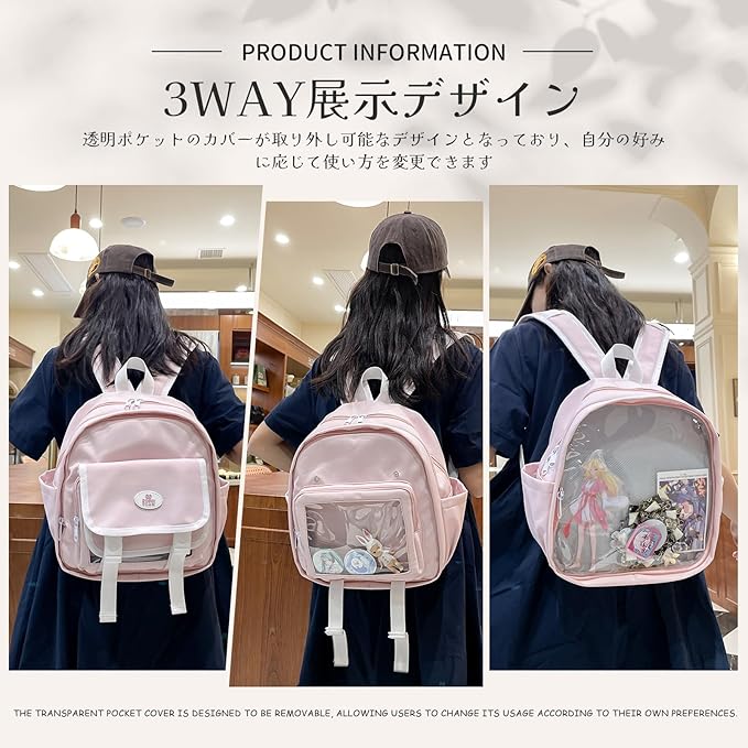 [Manatsulife] 痛バッグ 痛バ 痛リュック ミニリュック バックパック レディース 推し活バッグ 推し活リュック デコバッグ 可愛い オタ活 軽量 可動式透明窓 フロントパーツ着脱可能 TB06
