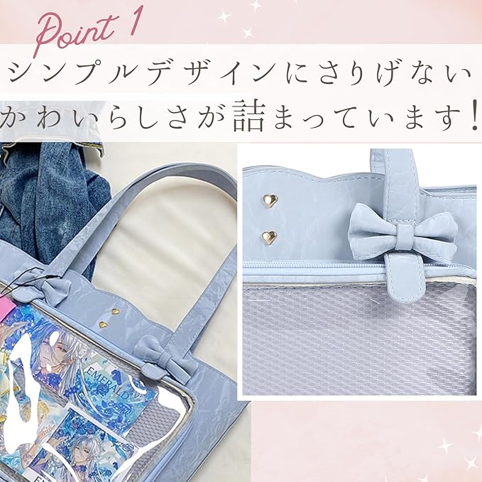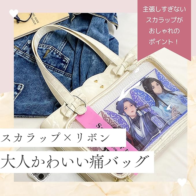 [ハルジオ] 痛バッグ 痛バ スカラップ リボントート 推し活バッグ トートバッグ 痛バック レディース マーブル調 黒 白 水色 ブラック ホワイト ブルー いたば かわいい おしゃれ リボン 推し活 推し バッグ バック かばん グッズ 人気 シート b