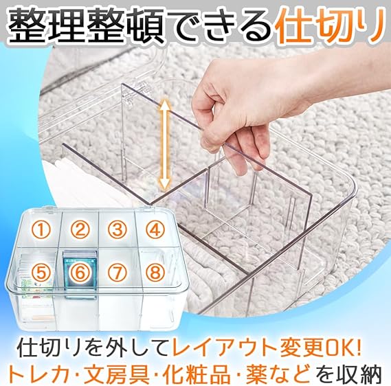 透明コレクションケース トレーディングカード保管 大容量 8区画 外せる仕切り板 防汚対策 a