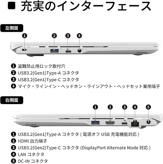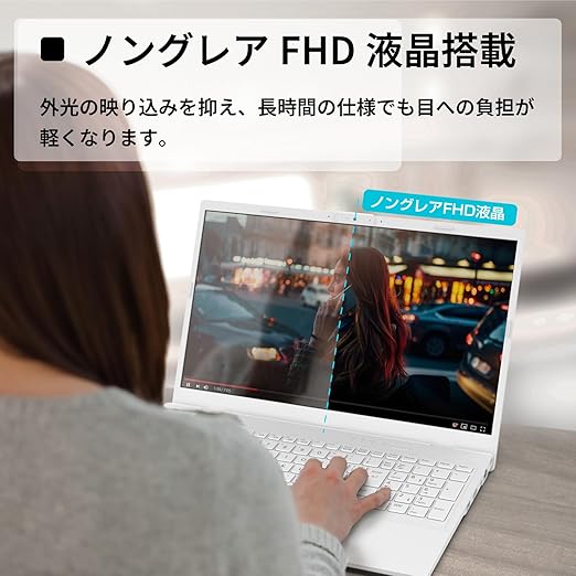 ディスプレイ:15.6型ワイド フルHD[1920×1080] ノングレア液晶 / 拡張I/F:HDMI出力×1、USB3.2(Gen2)Type-C×1(右側面(USB Power Deliver