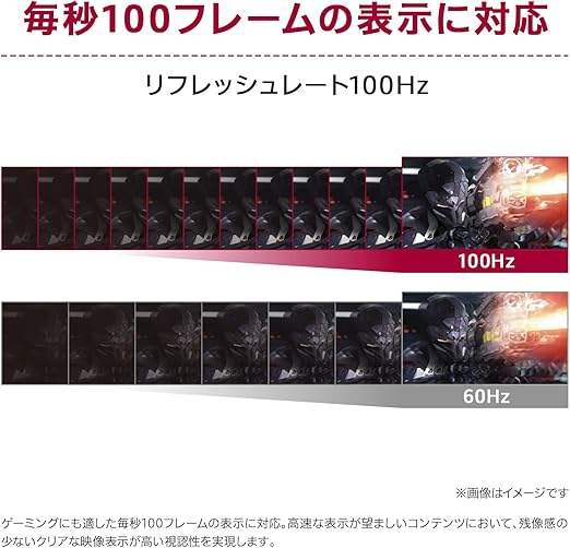 1秒間に100フレームを表示できる高リフレッシュレートに対応し、仕事だけでなくゲームも快適に