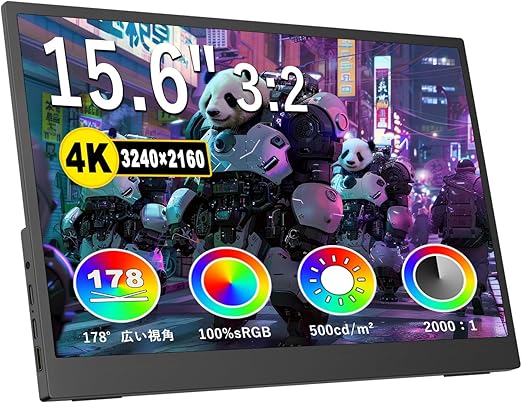 モバイルモニター 4k 3240*2160 モバイルディスプレイ 3:2画面比 VESA対応 100%sRGB広色域 500nits で 超軽量、超薄型 ミニPC・ノートPC用ハイエンドポータブルモニター a