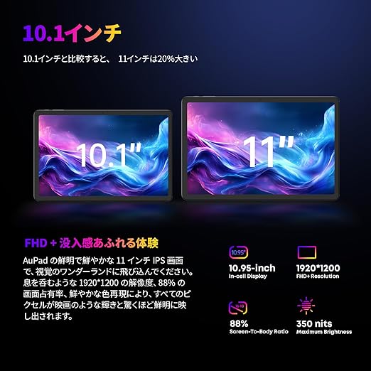 Android 14 タブレット 11インチwi-fiモデル2025新登場 CHUWI AuPad 大型タブレット、 8GB RAM+128GB+512GB microSD拡張、Snapdragon 685 8コア60Hz Widevine L1対応、 7000mAh 1920*1200 2K画面 2.4G/5GWiFi/BT5.13MP/5MPカメラ 4G LTE SIMフリー a