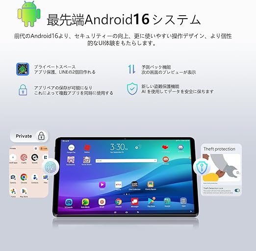 【ついに登場!業界初、Android 16搭載タブレット】DOOGEE U11 タブレットは、2025年に最新リリースされたAndroid 16オペレーティングシステムを搭載しています。今回のアップデートでは、セキュリティ、生産性、ユーザー体験の各面で大幅な改善と機能強化が図られました。ダイナミック通知やデスクトップウィンドウモードなど、多くの新機能がマルチタスク処理能力と操作性を向上させています。また、次世代AI「Gemini AI」を搭載。高精度な情報検索や生成AI機能で、タブレットの使い方