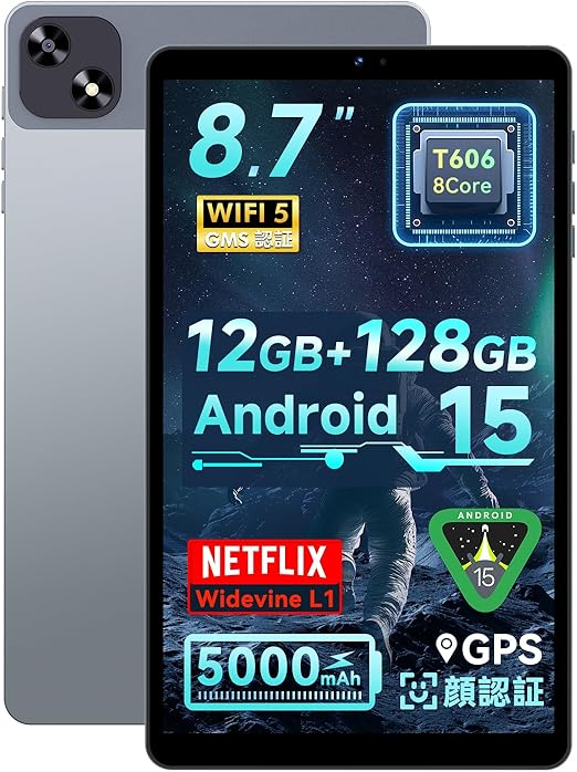 【専用ケース付き】タブレット 8インチ Android 15 Tablet 8コアCPU Unisoc T606オクタコア 12GB+128GB+1TB拡張 アンドロイド タブレット1340x800 IPS 5MP/8MPカメラ Wi-Fiモデル 5000mAh Widevine L1対応 GPS搭載 359g軽量 GMS認証+無線投影+顔認証+児童保護 a