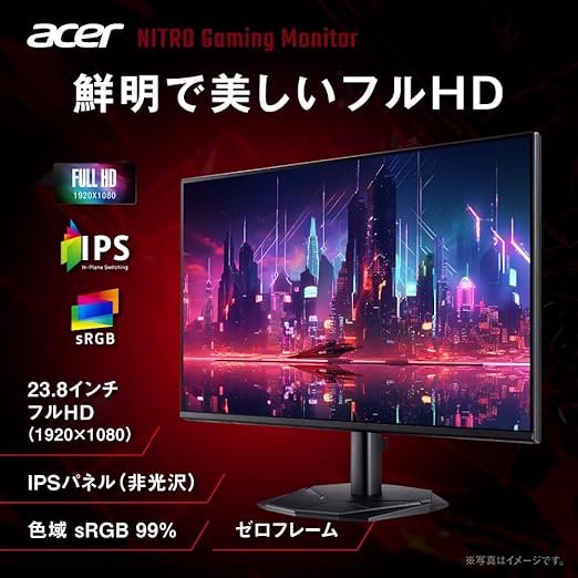 Acer 23.8インチ フルHD 144Hz 1ms(VRB) IPS 非光沢 sRGB 99% AMD FreeSync ブラックブースト VRB対応 ブルーライト低減 HDMI 1.4 DisplayPort v1.2 ゲームビューテクノロジー Acer Display Widget 6軸カラー調整 VESAマウント対応 Nitro ゲーミングモニター KG241YP6bip a