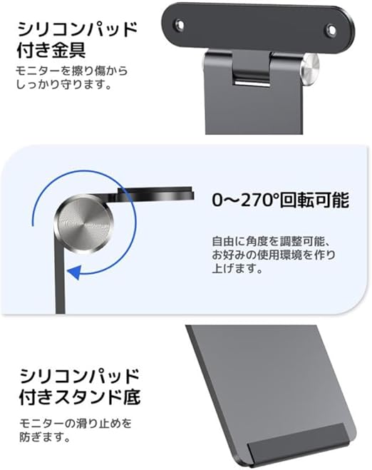 モバイルモニター用 VESA式ホルダー スタンド 270度調節可能 1.8kg耐荷重 VESA75対応 ネジ付き アルミ合金製 モバイルディスプレイ用 13.3インチ 15.6インチ 17.3インチ UPERFECT a
