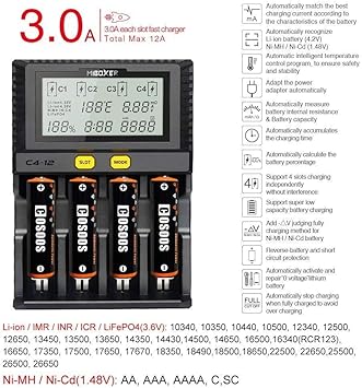 MiBOXER 電池充電器 18650 充電器 ミニ四駆 電池 【 4本同時 3A充電 可能 】 C4-12 (C4-12(3.0A充電)) a