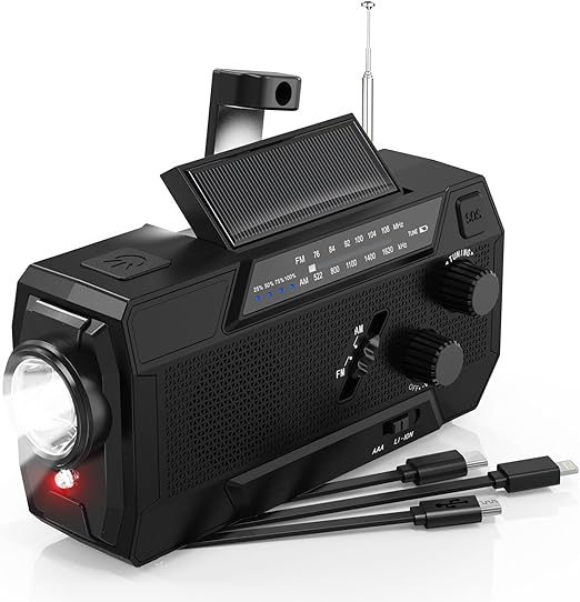 Shinmax 防災ラジオ 4000mAh電池内蔵 AM/FM対応 手回し災害ラジオ 多機能 SOSアラート付き 3ケーブル内蔵 懐中電灯 読書灯 アウトドア キャンプ 防災グッズ 非常用 防災用 USB充電式 ソーラー充電 手回し充電 スマホ充電可能 台風/地震/津波/停電などの緊急対策 日本語取扱説明書 (4000mAhブラック) a