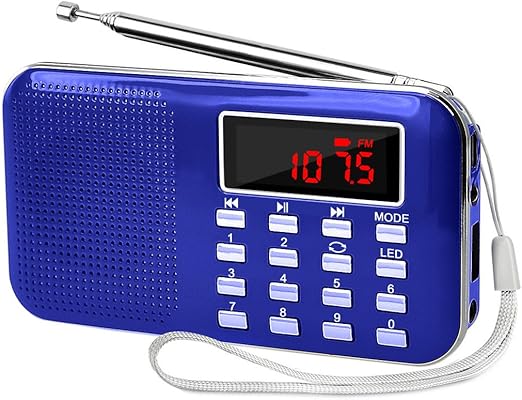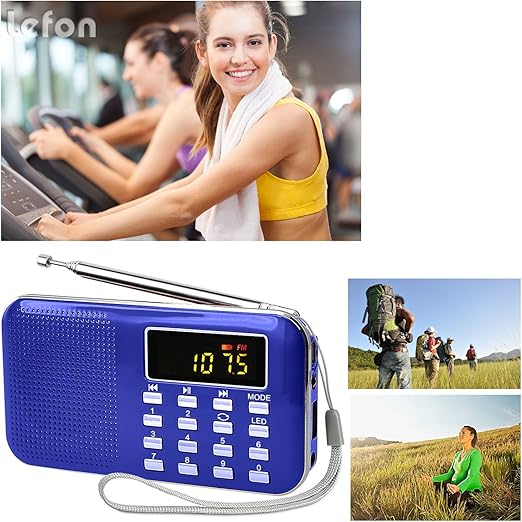 LEFON 充電式 多機能 AM FMポケットラジオ 高感度 USB.microSDカード対応 MP3プレーヤー LEDライト 非常用 小型で軽量 携帯ラジオ (ブルー) a