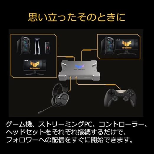 ASUS ゲームキャプチャーボックス TUF GAMING CAPTURE BOX-FHD120 1080p / 120Hz / ゲーム実況 録画 配信 会議 向け/ウェブカメラ PS5 Switch Mac Windows/OBS公式承認モデル / USB3.2 / ボイスチャット録音機能 a