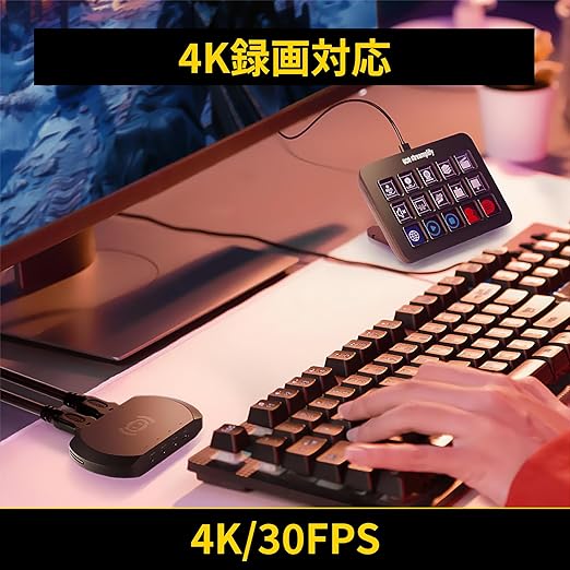 【4K@30Hz録画 / 4K@60Hzパススルー出力】高品質な配信を実現する4K/30Hz録画に対応。最大4K@60Hzパススルー出力により、モニター上で臨場感あふれるプレイをしながら、PC上での録画が可能です。