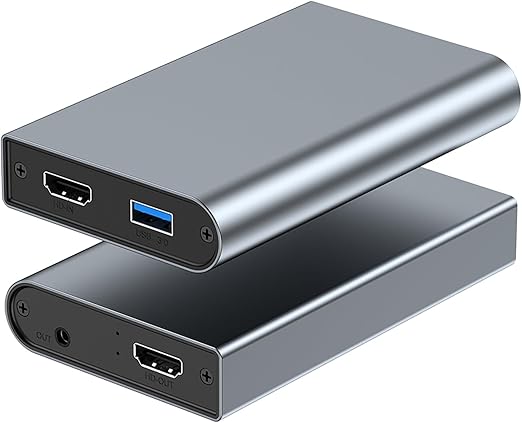 キャプチャーボード パススルー 4K 60FPS USB 3.0 外付け ビデオキャプチャー HD ゲームキャプチャー ゲーム録画 ビデオ録画 ライブ配信 医用撮像 テレビ録画 生放送用 ライブ配信用キャプチャーデバイス (グレー) a