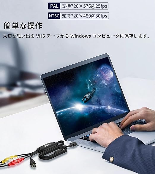USB2.0 ビデオキャプチャー 1920×1080p 1080P対応 ビデオ/VHS 8mm DVD ダビング パソコン取り込み ビデオキャプチャー キャプチャーボード Windows XP/7/8/8.1/10/11、MAC 対応 a