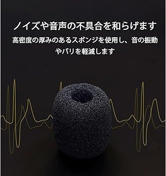 【素材】スポンジ。素材の密度が高く、シっとりとした質感で手触りが良いです。音質の改善、雑音の防止に。マイク部分の保護やホコリなどの侵入の防止に、風や呼吸音などの雑音の軽減に役立ちます。