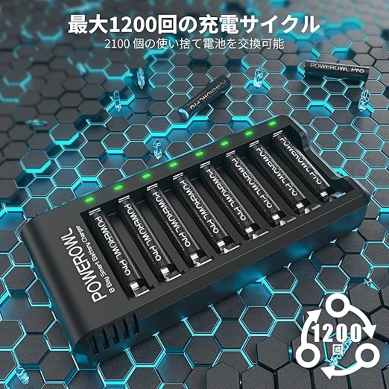 POWEROWL 単四電池 充電式プロニッケル水素電池16個 大容量1100mAh、自然放電抑制、環境保護、約1200回循環使用可能 a