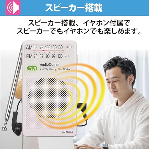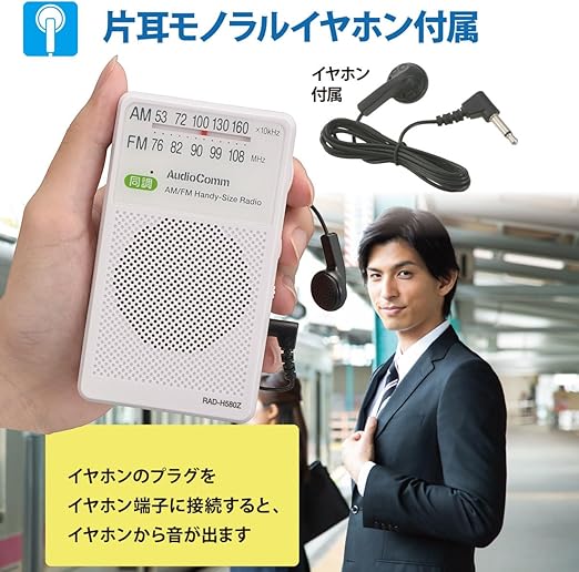 オーム(OHM) 電機AudioComm ラジオ ポケットラジオ コンパクトラジオ ハンディサイズラジオ AM/FM イヤホン付き ワイドFM対応 ホワイト RAD-H580Z 03-5028 a