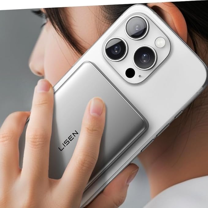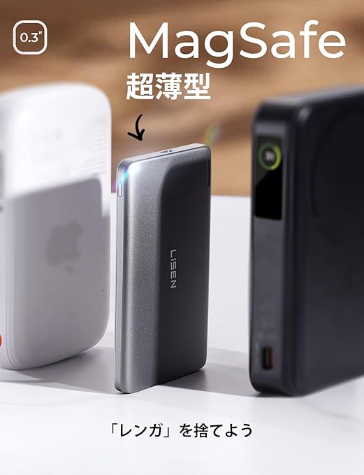 LISEN 超薄型 Magsafe対応 モバイルバッテリー マグセーフ 5000mAh 軽量 小型 0.8mm マグネット式ワイヤレス充電対応 PSE認証済み iPhone 16 15 14 13 12 Pro Max Mini シリーズ 機内持ち込み可 旅行 出張 災害用 a
