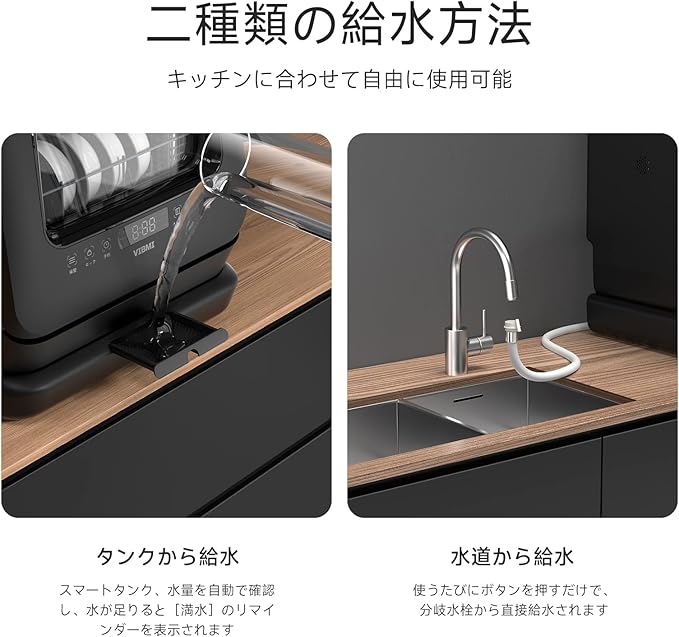 VIBMI 食洗機 工事不要 1~3人用 食器洗い乾燥機 コンパクト 卓上型 小型 タンク式 食洗器 ブラック a