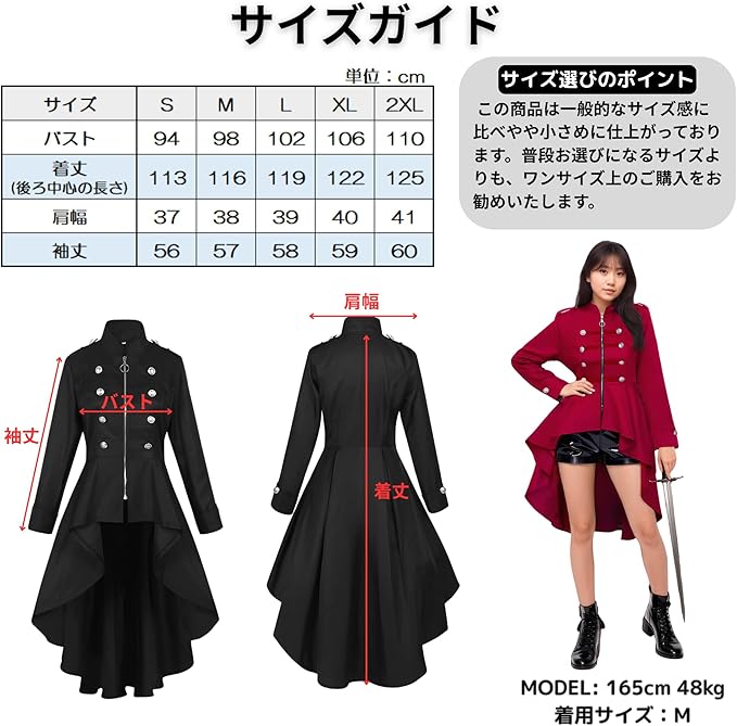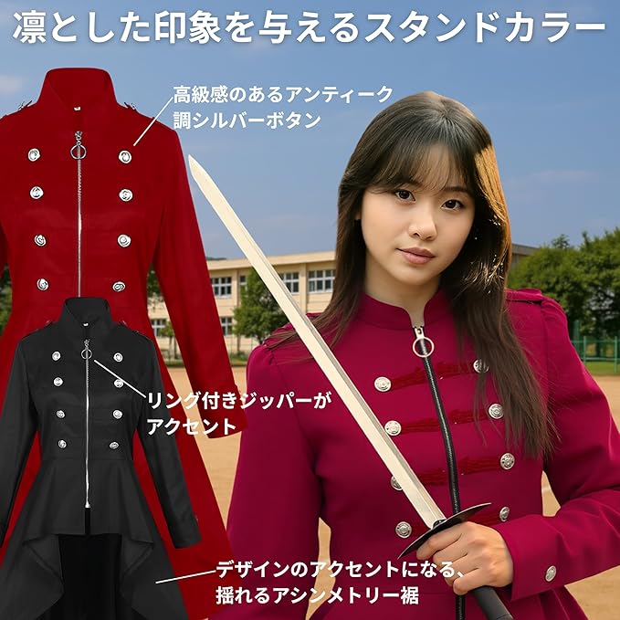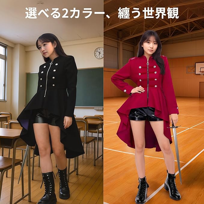 [AZ-FRONT] 軍服 ロリータ ゴスロリ コスプレ ハロウィン 燕尾服 アシンメトリー裾 パーティー 文化祭 学園祭 ステージ a